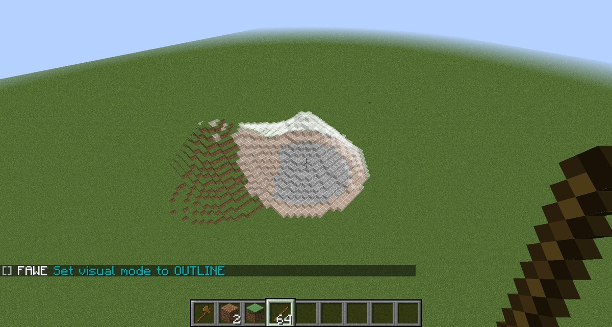 你可以修改目标模式,以便修改不同区域的建筑(空气、墙壁、地面等)。通过命令 //brush range 修改笔刷半径也很有用。