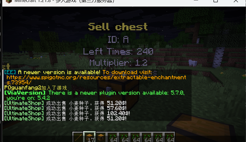 - 出售魔箱只在所在区块已加载,且其拥有者在线的情况下才会工作。尚无计划支持多人共享的出售魔箱。
