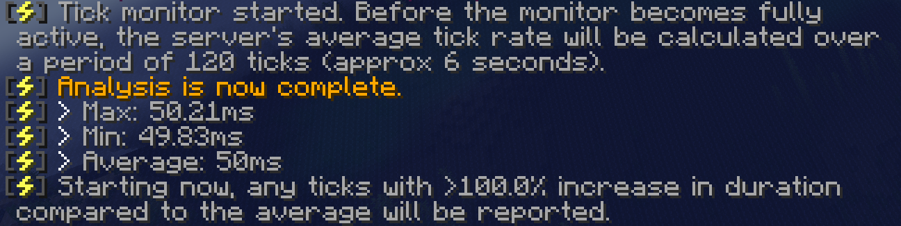 如果输出的内容还不够明显,试试将检测值调低。例如,/spark tickmonitor --threshiold-tick 70。